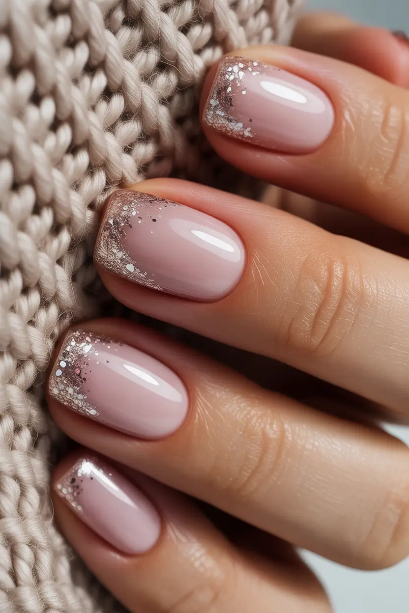 Winter in a blush would have looked just like this. The blending of sheer nude with subtle pink is like a cloud, airy, like the interior of a seashell in morning frost. It is a manicure that seems to be inexhaustibly feminine, tender, and warm that suits people who appreciate simple but romantic designs. This rose quartz-inspired ombré is one of the most classy winter nails of 2025-2026 because of its subtly beautiful and relaxing effect.