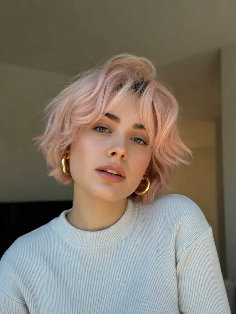 Sometimes the smallest change makes the biggest difference, and this softly tousled bob proves it. I love how the peach pastel tone brings warmth and softness to the face while the textured cut adds playful movement that instantly feels youthful. It perfectly aligns with spring Hair Color Ideas to Look Younger, especially for women wanting something fresh but still subtle. The slightly messy finish keeps things relaxed and very Trendy for everyday styling.