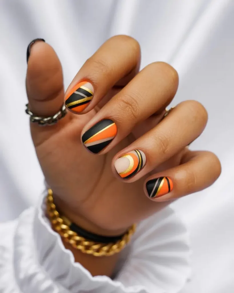 Come January, this mani shines. It nails that in-between festive vibe no one sees coming—Earth, fire, and shine, all at once. I’d keep remixing it all winter long, swapping colors for warmth and that little metallic nail keeping everything feeling fresh and never ordinary.