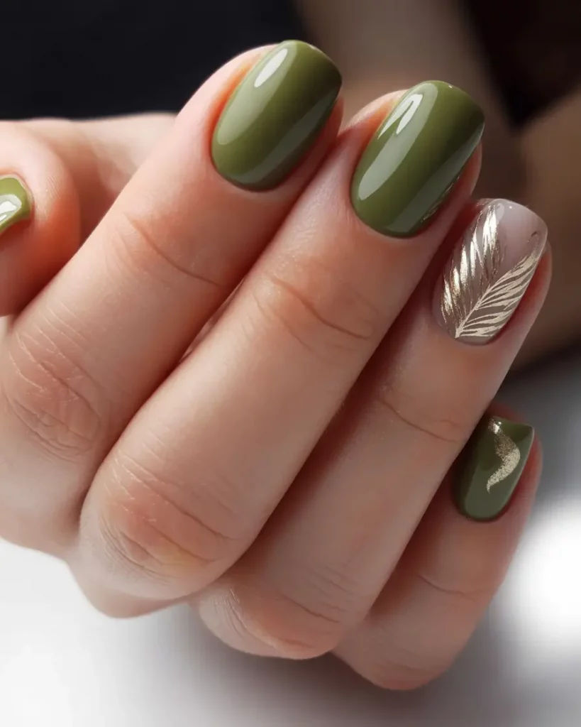 This mani is a Saturday vibe: grabbing hot cider and crossing the farmers’ market for fresh greens, cozy sweater optional. 2025 short-gel styles were basically made for this grounded, yet vibrant, little green garden.